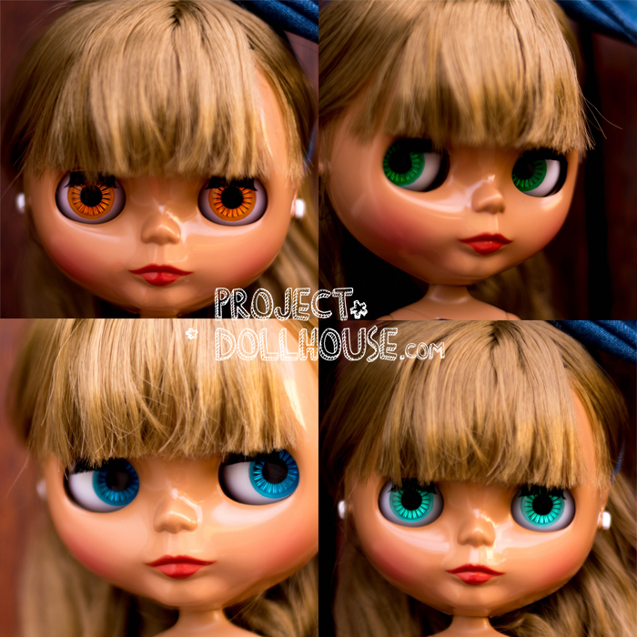 Cherry Beach Sunset has one special front facing eyechip in a spectacular tiffany-blue colour – or the same colour as the oceans in Northern Australia, and 3 stock eyechips. Because of her lovely chocolatey skin colour though, the blue and the green eyechips look stunning on her. The front facing oranges kind of freak me out (but then again they always freak me out) and will probably be swapped out in the future.