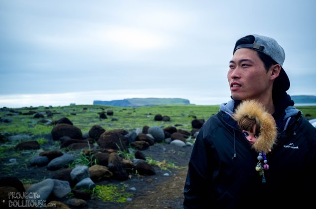 Nori climbing the black beaches of Iceland